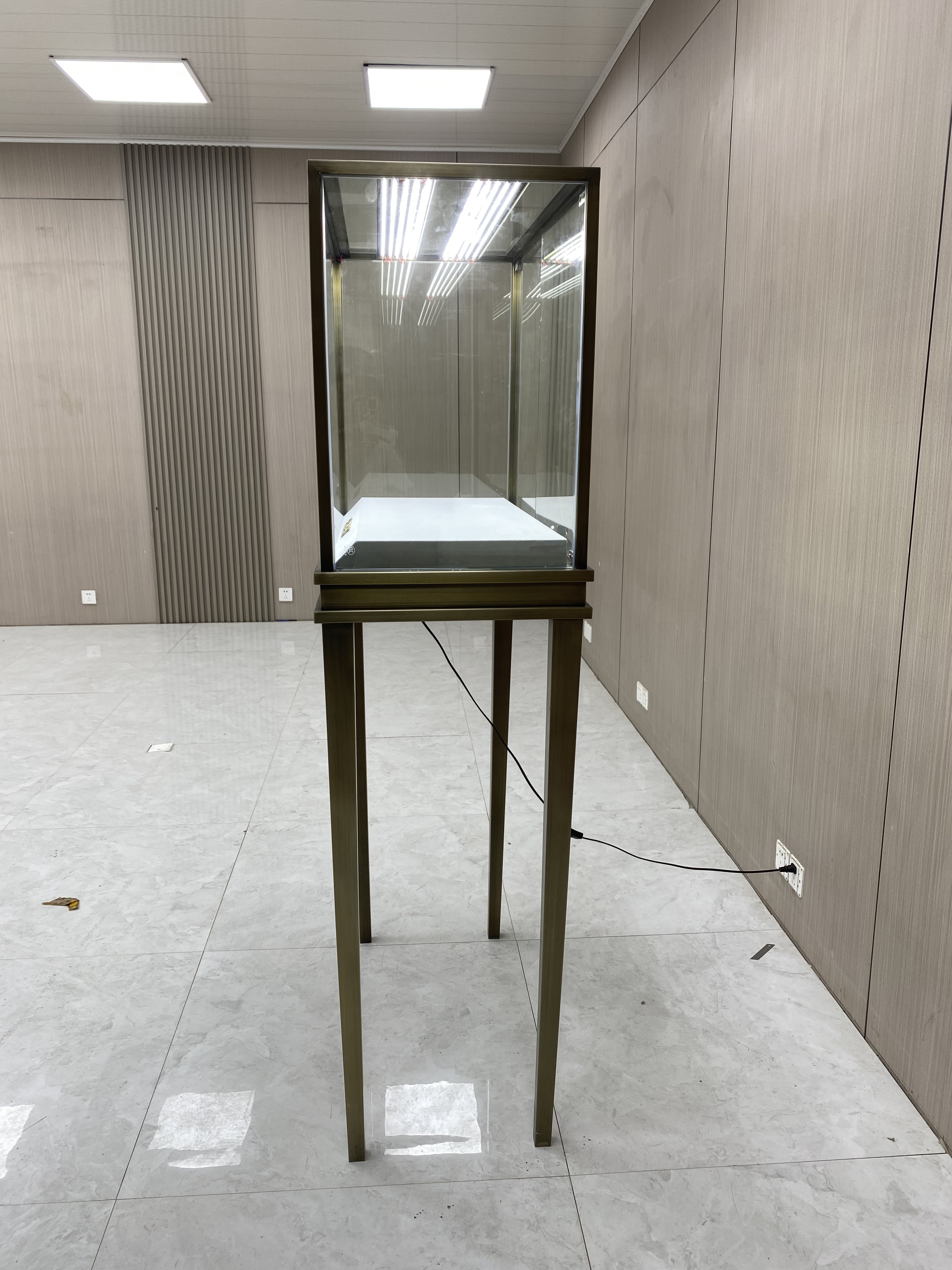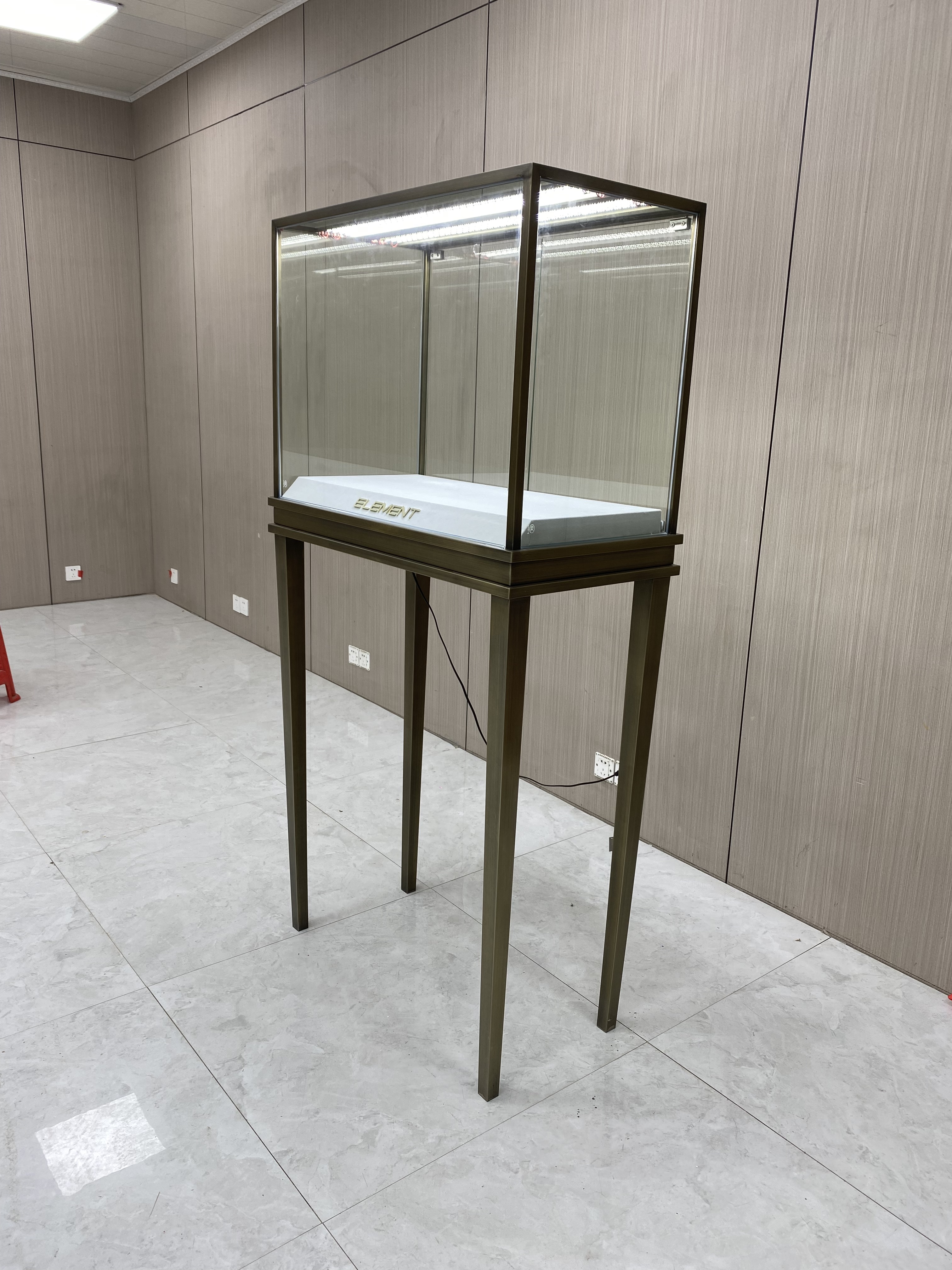 Em resumo, um armário de exibição de jóias de bronze é uma escolha versátil e sofisticada para exibir jóias valiosas em uma variedade de configurações. Sua construção rica e quente e robusta a tornam a escolha ideal para butiques de ponta, galerias de arte, lojas de departamento e suítes de luxo. Seja usado para exibir uma coleção pessoal ou para atrair clientes em um ambiente comercial, um armário de exibição de jóias de bronze adiciona um toque de elegância clássica e fornece uma plataforma segura e visualmente atraente para exibir tesouros delicados e valiosos. Seu design atemporal complementa qualquer ambiente, criando um cenário perfeito para apreciar a beleza e o artesanato de jóias finas.