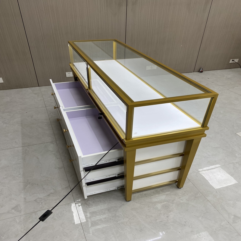 A empresa possui produtos leves de gabinete de exibição de jóias de luxo.