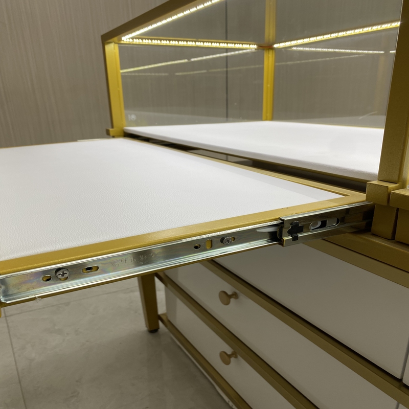 Em joalherias, os armários leves de exibição de jóias de luxo são os principais equipamentos para exibir produtos de jóias. Por meio de armários de exibição bem projetados, o brilho e o brilho das jóias podem ser destacados, atraindo a atenção dos clientes e melhorando o desempenho das vendas. Ao mesmo tempo, o design elegante e o excelente desempenho de armários de exibição de jóias leves de luxo também podem aprimorar a imagem e a nota geral da loja, fornecendo aos clientes um ambiente de compras confortável e sofisticado.