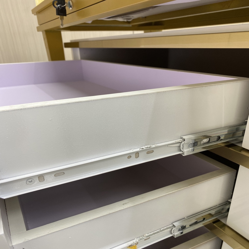 O espaço interno do gabinete de exibição é razoavelmente projetado para fazer uso total de cada centímetro de espaço para exibir jóias. A altura e o ângulo de componentes, como prateleiras e gavetas, podem ser ajustados para acomodar produtos de jóias de diferentes tamanhos e formas.