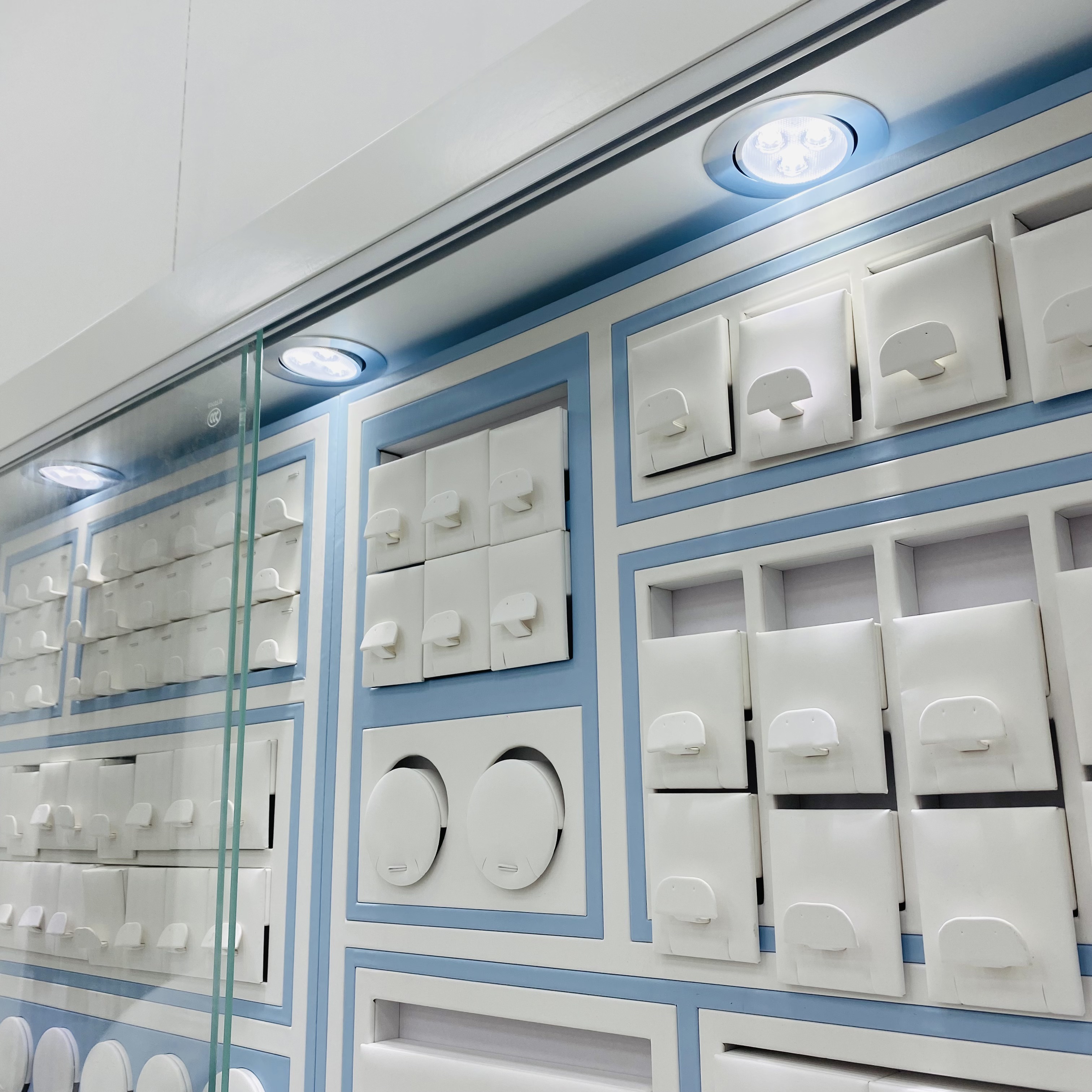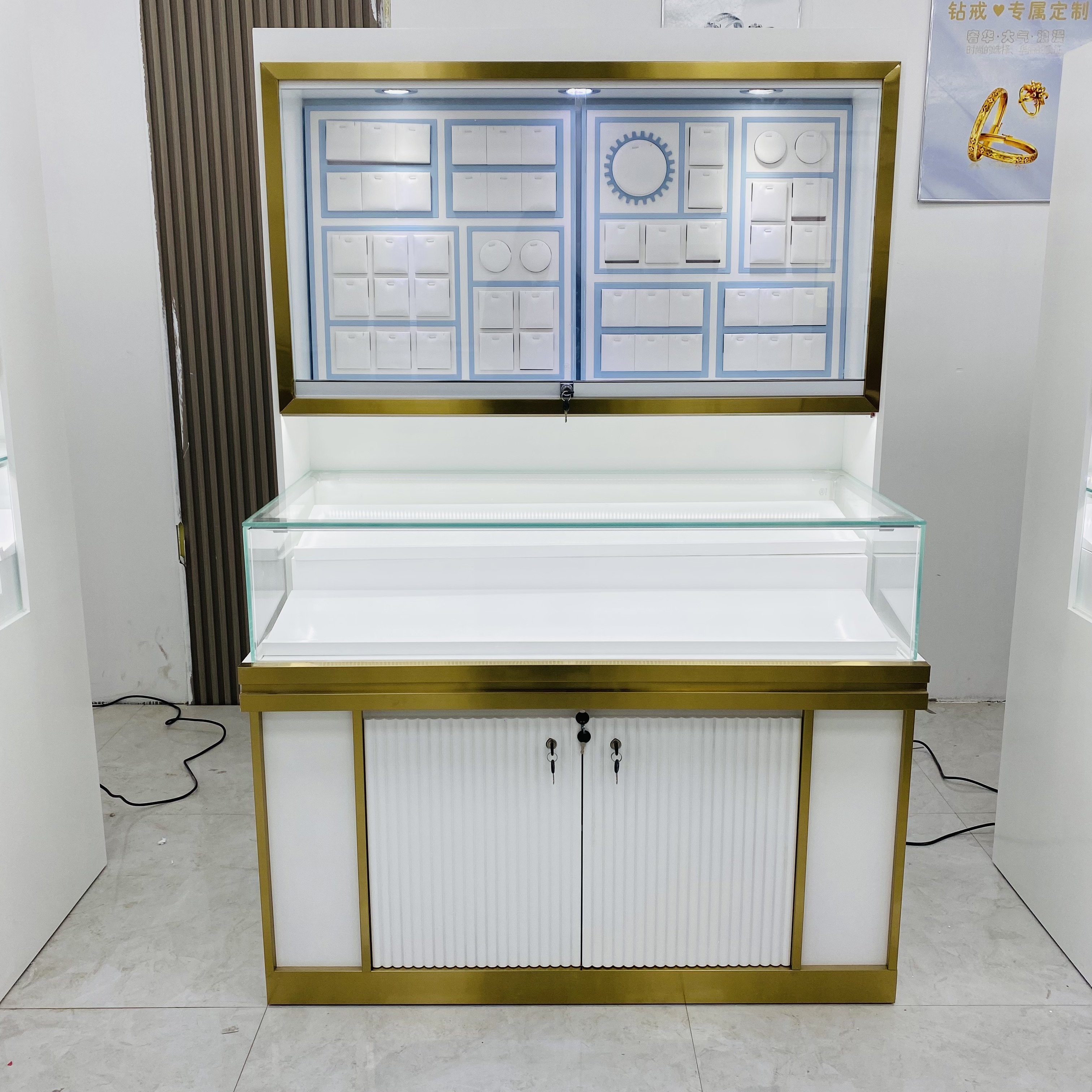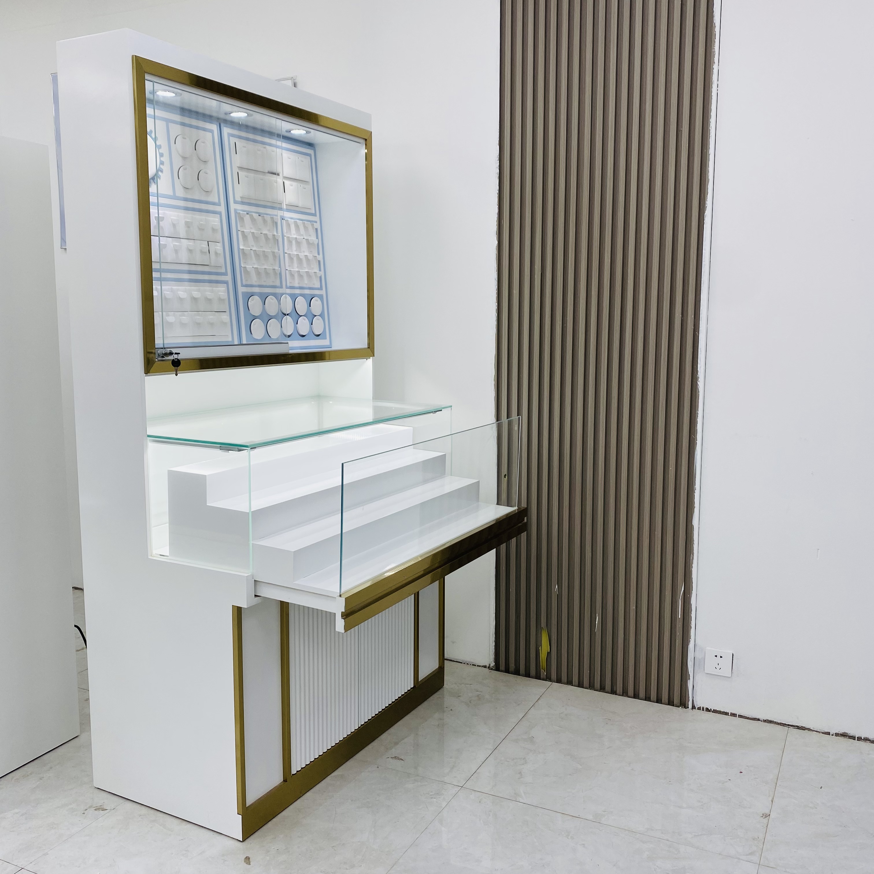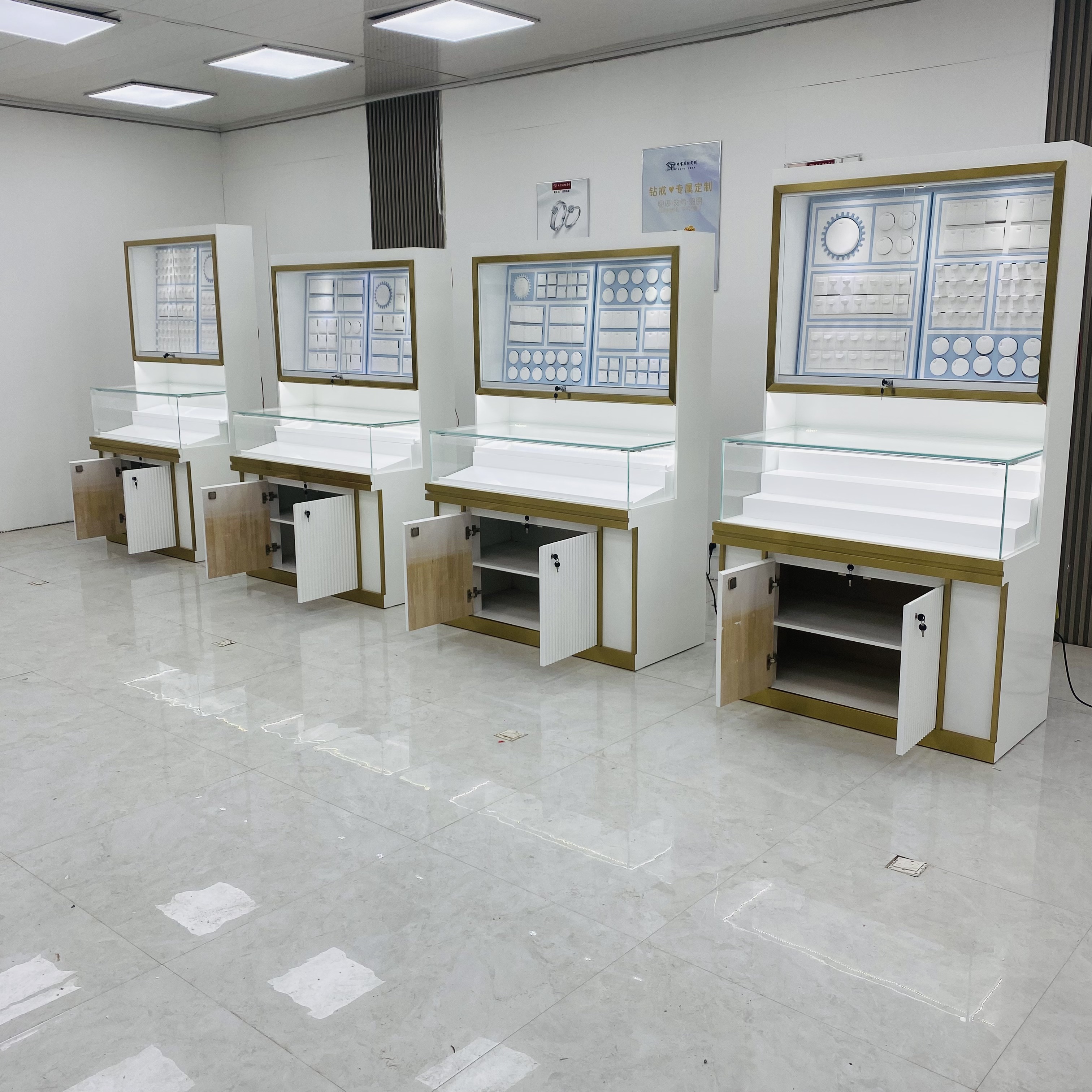 O interior do gabinete de exibição está equipado com um sistema de iluminação profissional, como tiras de luz LED ou holofotes, que podem destacar o brilho e os detalhes das jóias e melhorar o efeito da tela. O sistema de iluminação também pode ser ajustado de acordo com as características das jóias e a tela precisa obter o melhor efeito visual.